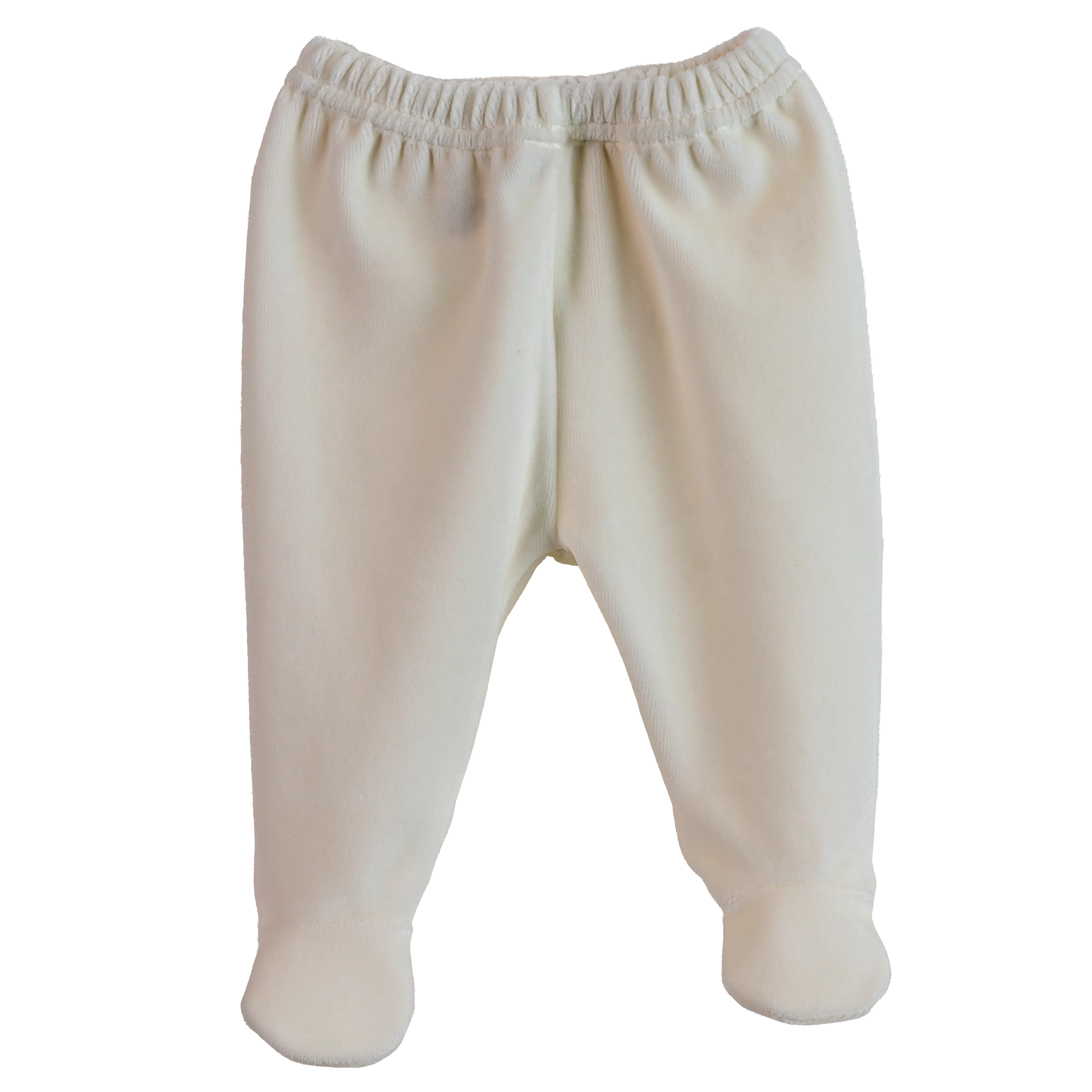 Fato de 2 peças laminado com camisola com abertura atrás e calça com pé. Gola à ondas com tecido às flores. Fabricado em Portugal.